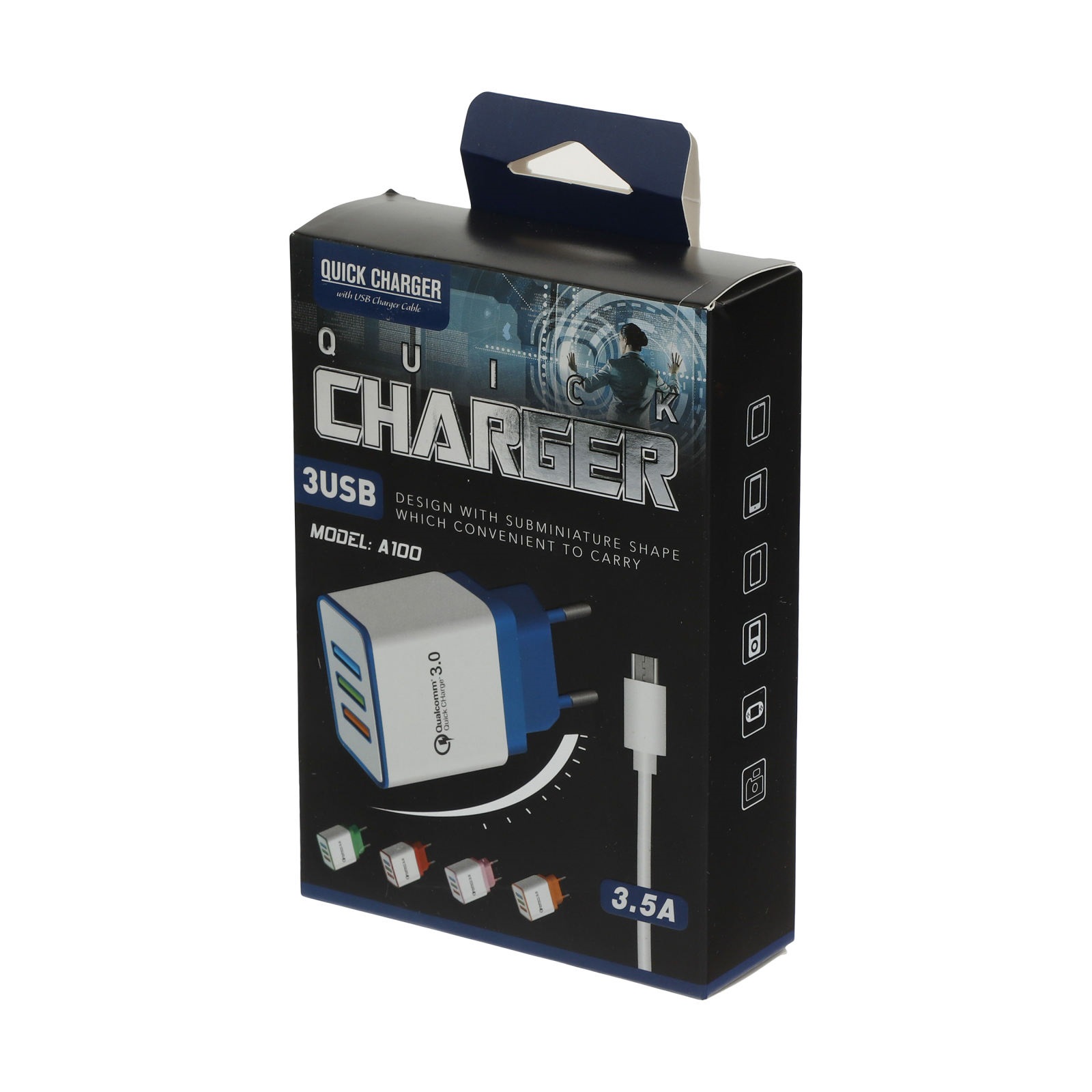 شارژر دیواری سه پورت مدل A100از شارژرهای باکیفیت است؛ این شارژر به دو پورت USB خروجی میدهد، در نتیجه به طور همزمان میتوان اقدام به شارژ سه تلفن همراه، تبلت و دیگر لوازم الکترونیک با این شارژر کرد. این شارژر هماهنگی خوبی با تلفنهای همراه هوشمند دارد؛ در تکنولوژی iSmart شارژر بهصورت هوشمند متوجه میشود که دستگاه متصل شده تا چه میزان نیاز به برقرسانی دارد و خروجی خود را متناسب با آن مقدار تنظیم کرده تا هم گوشی یا تبلت در فرآیند شارژ شدن آسیب نبیند و هم با سرعت بیشتری شارژ شوند. این شارژر دیواری با جریان برق شهری به خوبی هماهنگ است و در بازهی ولتاژ 100 تا 240 ولت به خوبی کار میکند، در نتیجه با ولتاژ جریان برق شهری در تمام نقاط جهان هماهنگی دارد و میتوان آن را در هر شهر و کشوری بهکار گرفت.